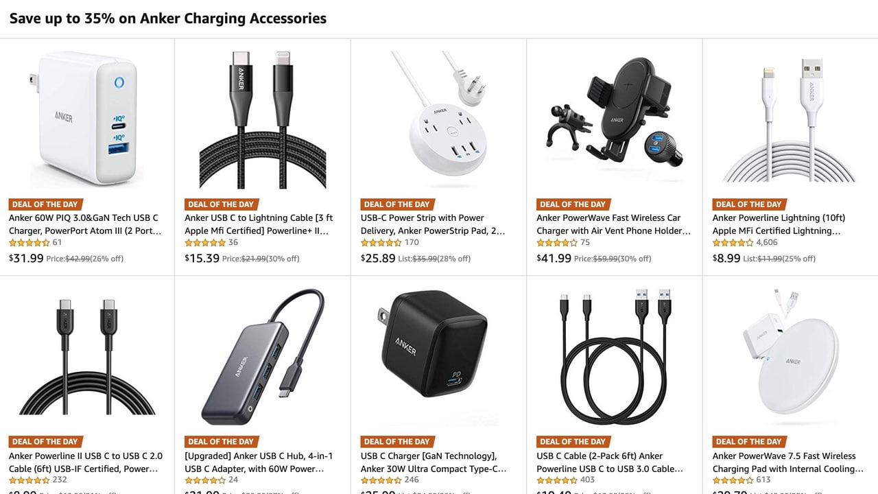 Featured in the deal is Anker's 30W USB-C charger that uses gallium nitride (Gann) instead of silicon. This allows for a smaller, higher efficiency charger that generates less heat.
