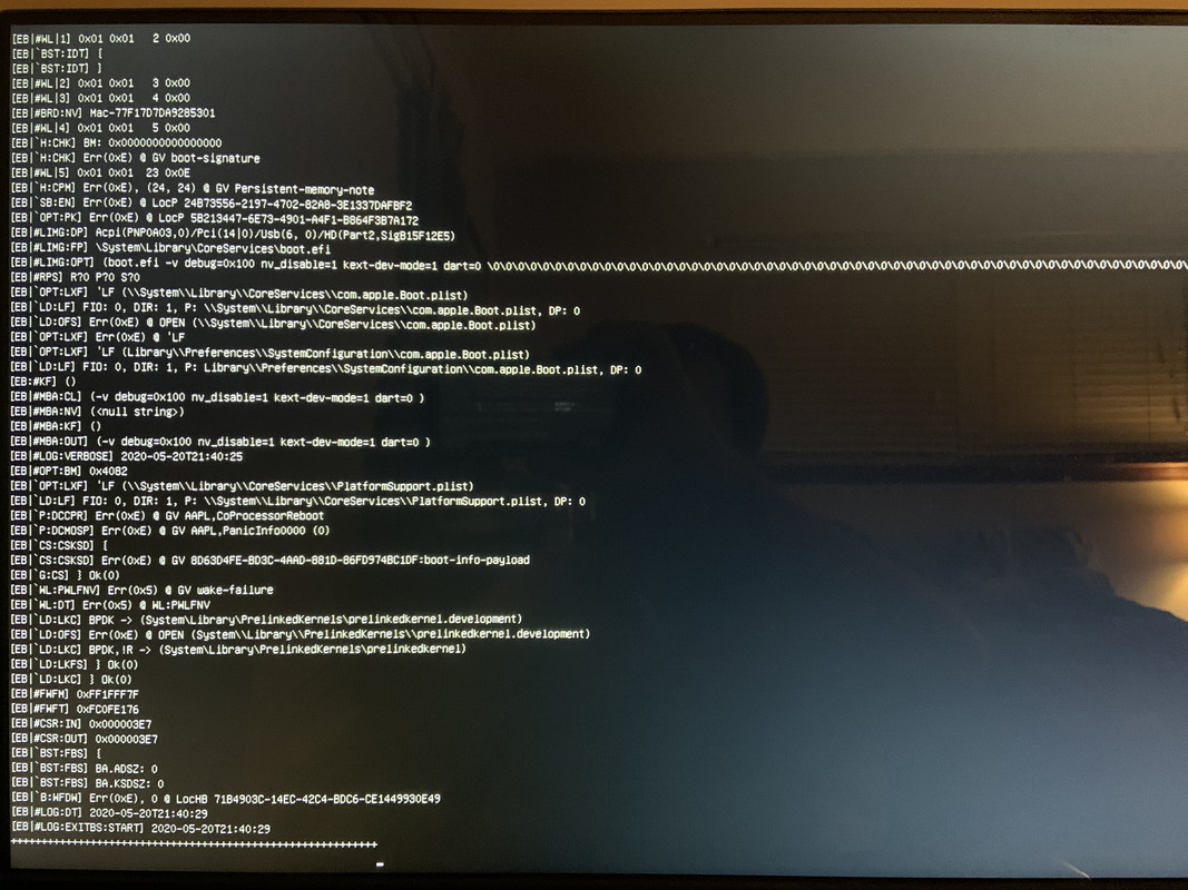 Here is a copy of my config.plist as well. I would like to note that I used CCE and it does not always save changes you make as you make them. I had to re-add the boot arguments mentioned in the guide as it did not save them the first time around. As it is, dark mode still does not work for some reason despite using the guide as it tells me to: https://pastebin.com/VyjGG5k5